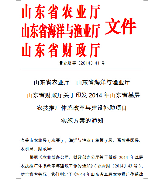 山东省农业厅山东省海洋与渔业厅山东省财政厅关于印发2014年山东省基层农技推广体系改革与建设补助项目实施方案的通知