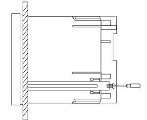 安装紧固 在任何一块厚度为1/16英寸(1.5mm)至3/8英寸(9.5mm)的面板上,开出一个92mm×92mm的矩形切口。将仪器后部从开口正面插入,后部锁紧即可。