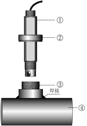 1、电极 2、压紧环 3、专用底座 4、管道